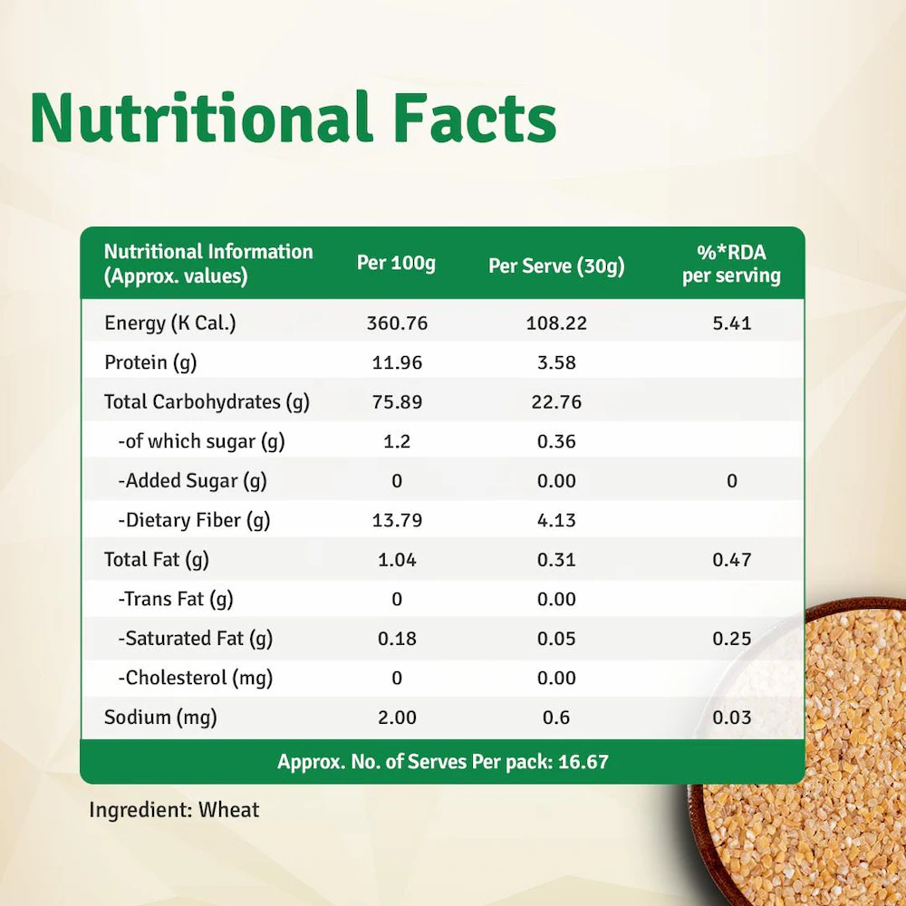 Naturally rich in dietary fiber, dalia promotes better digestion and supports weight management, making it a great choice for a balanced diet. Its slow-releasing carbohydrates provide sustained energy, keeping you full and active throughout the day.