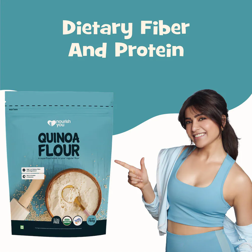 NOURISH YOU Organic Quinoa Flour 750G Pack | USDA Certified Gluten Free Atta | Enriched with Dietary Fibre, Protein & Vitamins | Improves Gut Health | Superfood | Micro-nutrients | No Preservatives