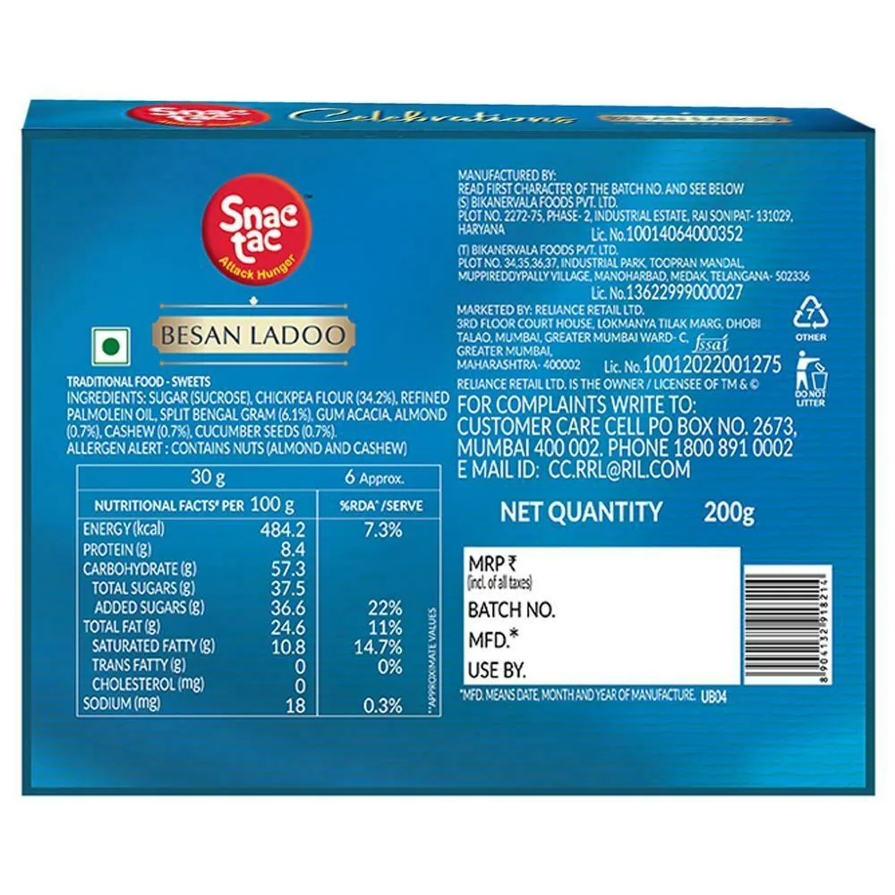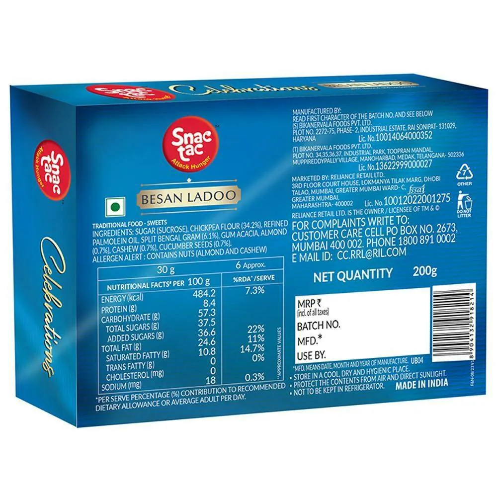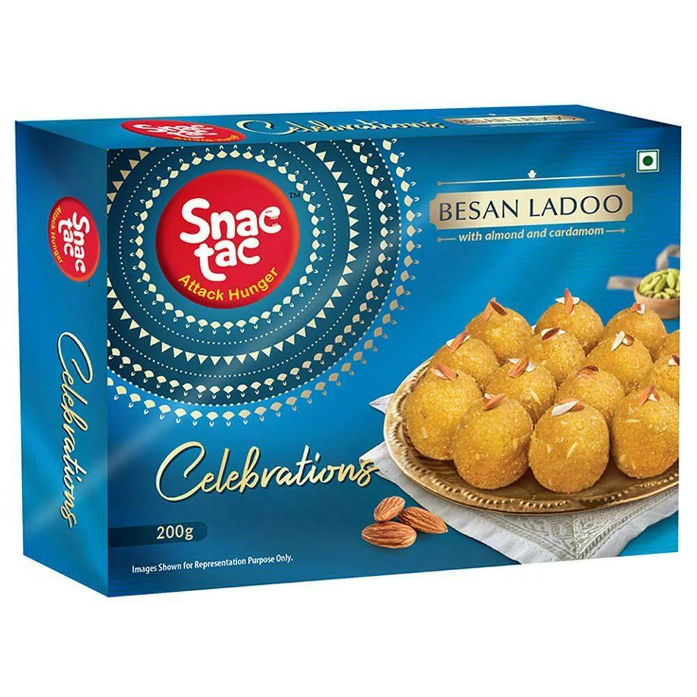 Snactac Celebtrations Besan Ladoo with Almond and Cardamom is a sweet treat you don’t want to miss. Perfect for every occasion, you can’t stop at just one. Spoil yourself silly with these delicacies. So what are you waiting for? Go ahead and buy this product online today!