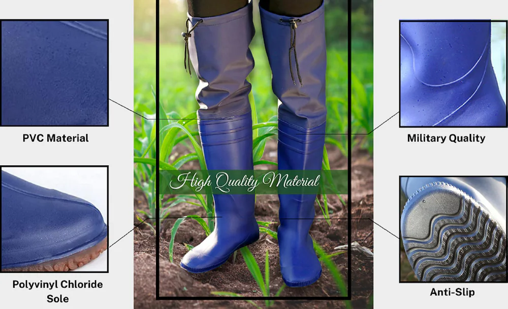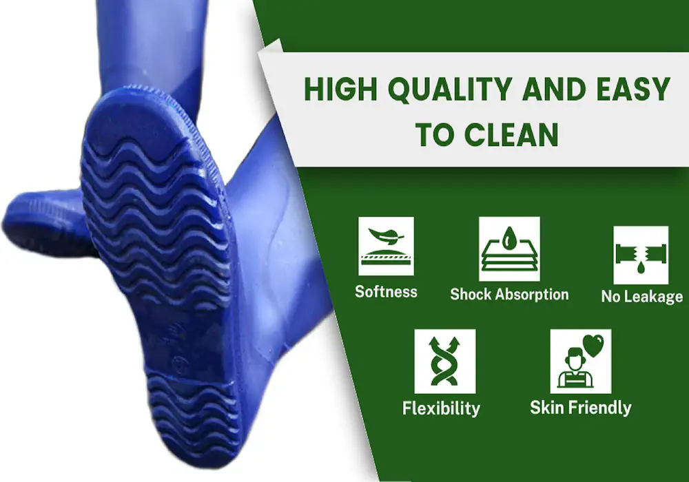 Farmers who are working mostly in the soil mud, it is the best option to save their feets from snake bite, insects in soil, sores etc. High quality new PVC material, No recycled material Softness, flexibility, durable and unbreakable Seamless forming, military quality, long wear and no leakage Wear-resisting outsole, anti-slip and shock absorption Not afraid of strong acid and alkali High quality and easy to clean.