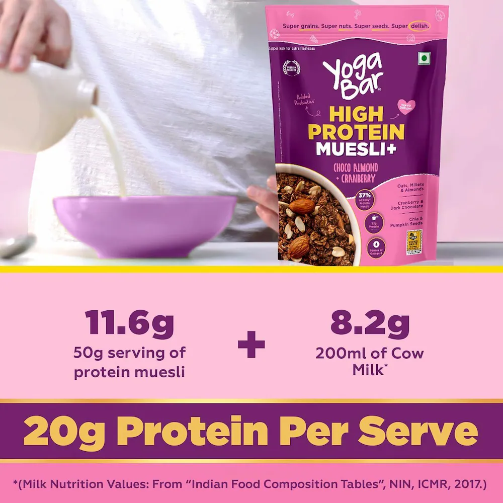 Yogabar High Protein Muesli, Choco Almond & Cranberry 850g